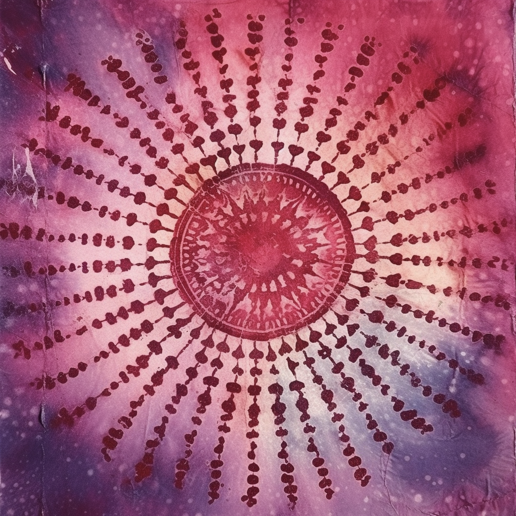 The random application of dye and the unique folds ensure that the dye sets in a marbled pattern, with each piece of fabric emerging as a one-of-a-kind work of art. The intensity and spread of the dye can be controlled through the fabric's dampness, the folding technique, and the dye application method, allowing for a wide range of artistic expressions. This technique can be used with a variety of dyes and on different types of fabrics, making it a versatile choice for creating striking and beautiful textile designs.
